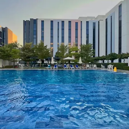 Pool View Studio Al Jadah的住客可用私人游泳池。该公寓离阿尔马亚兹音乐喷泉大约7公里。 从这家公寓走不到25分钟就到Sharjah Academy of Astronomy。